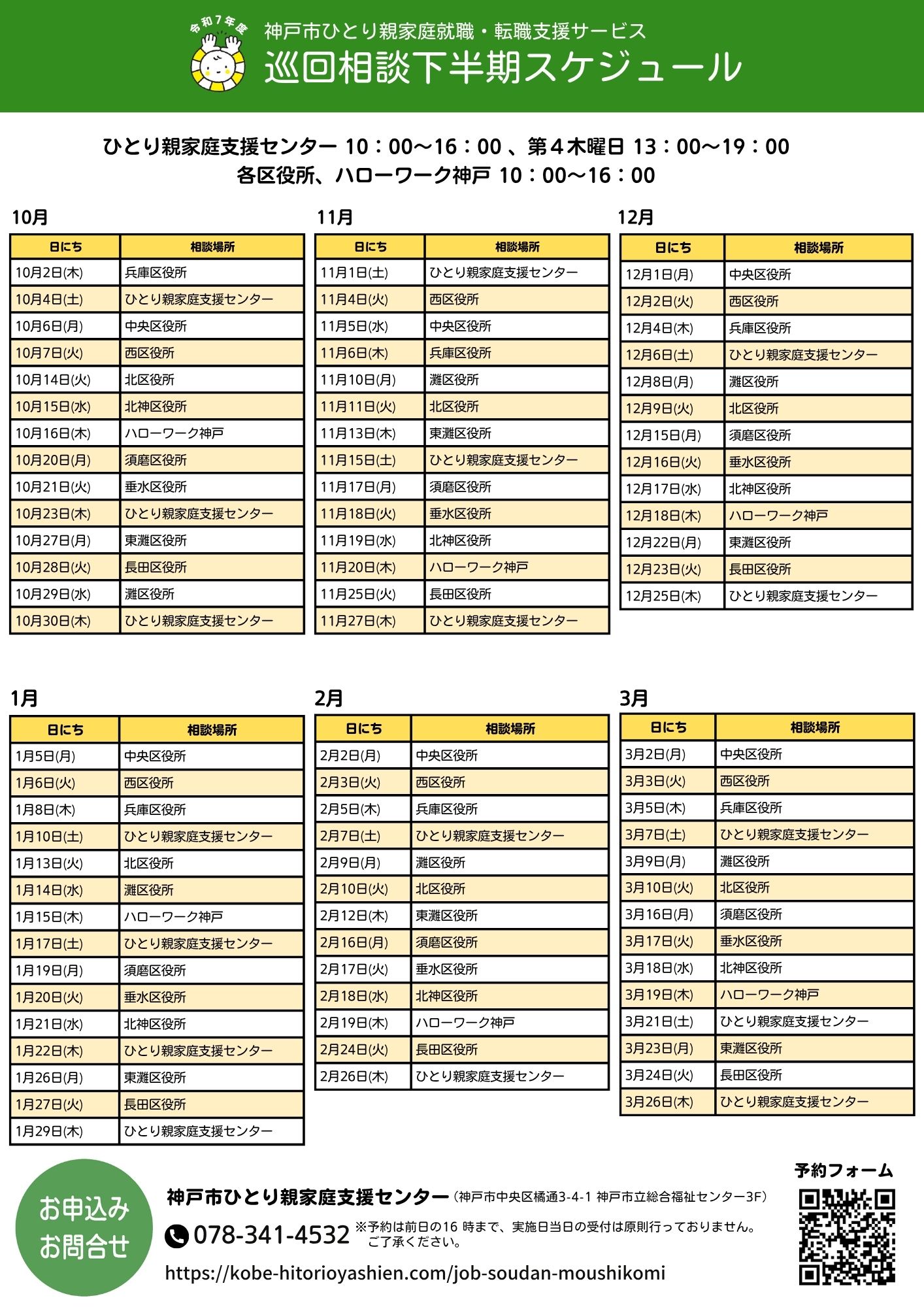 | ハローワーク神戸 | 第3木曜 10:00~16:00 |