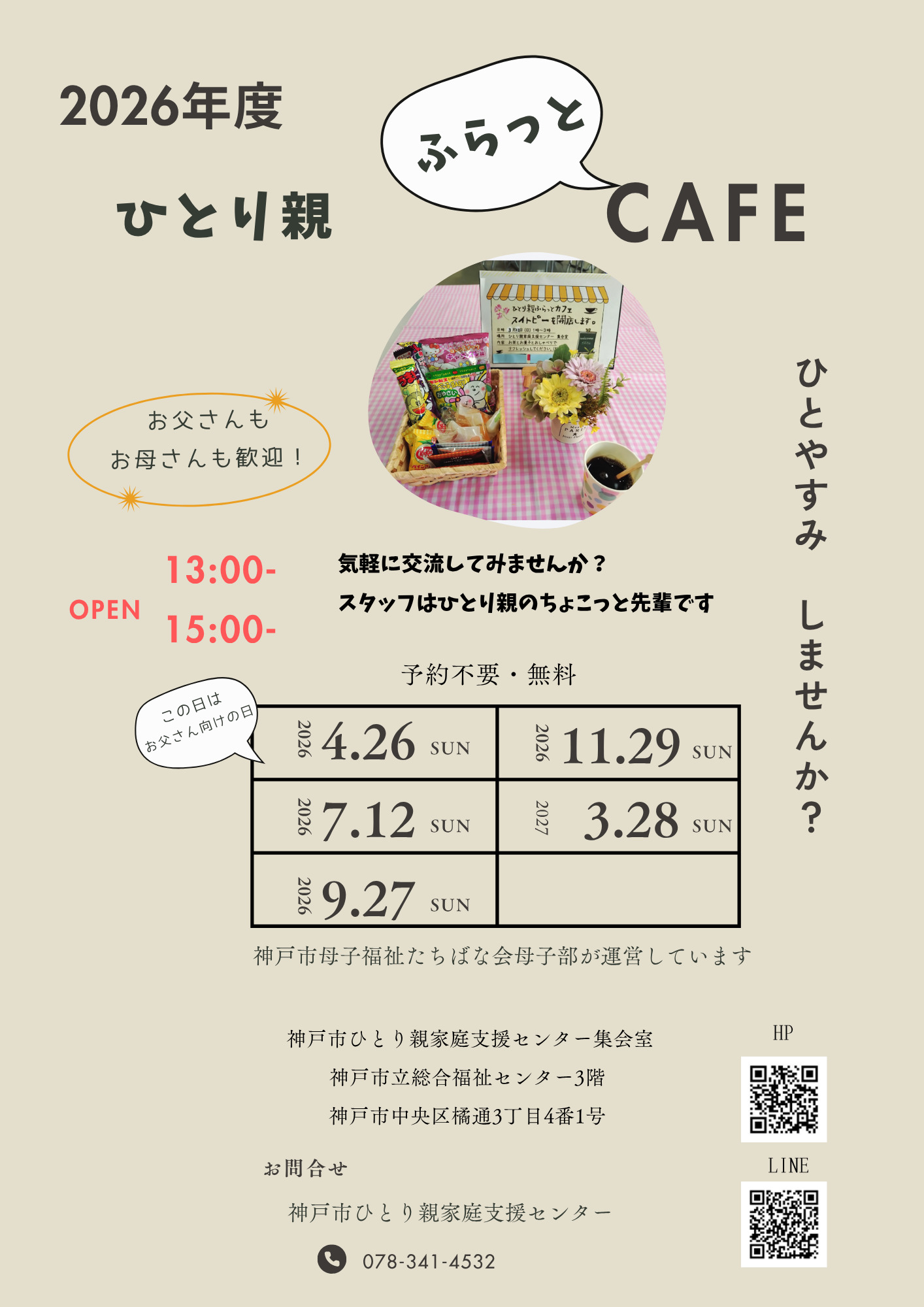☕【お知らせ】「2026年度ひとり親ふらっとカフェ」開催予定日☕