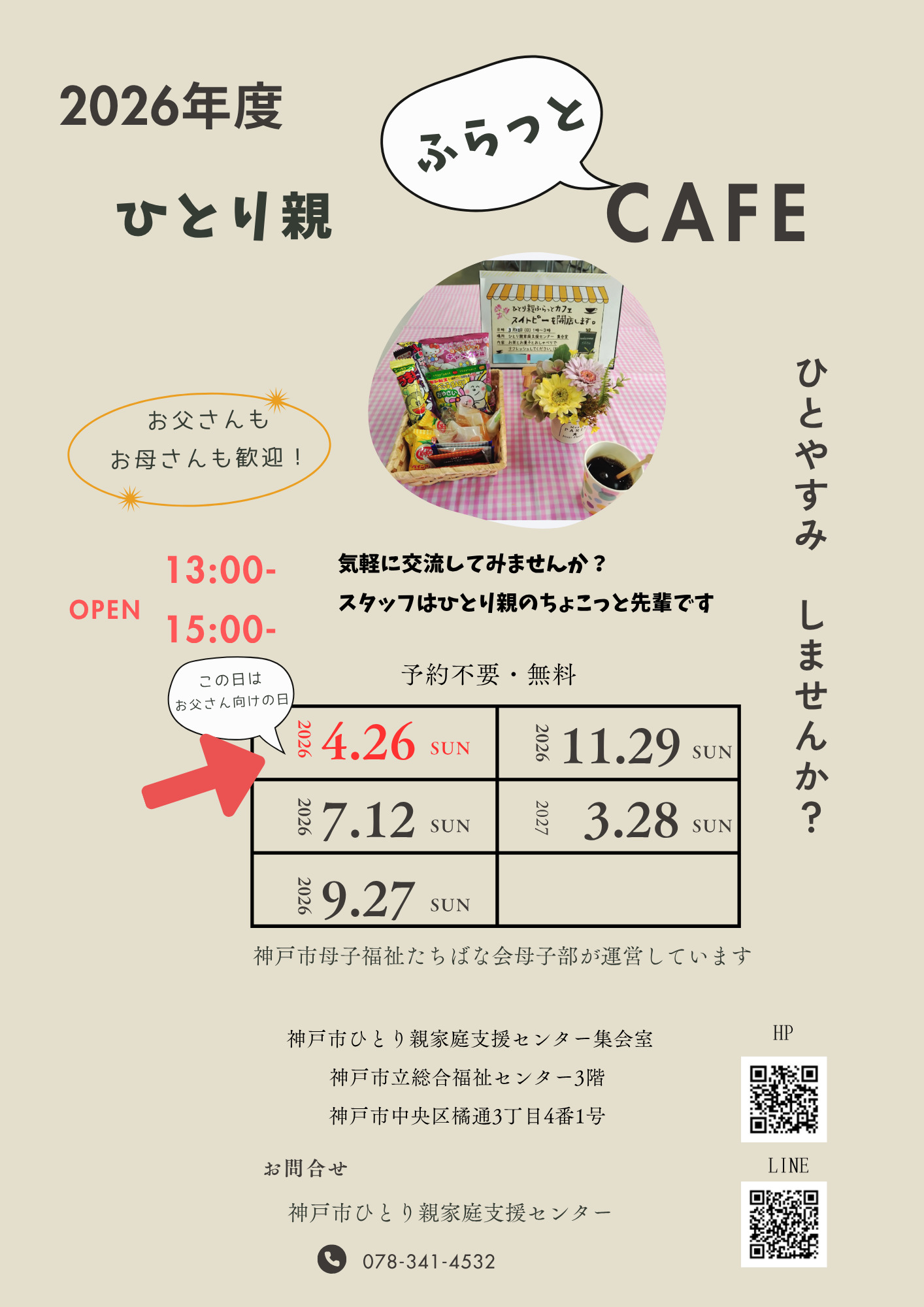 🚩4月26日(日)「ひとり親ふらっとカフェ」開催します☕